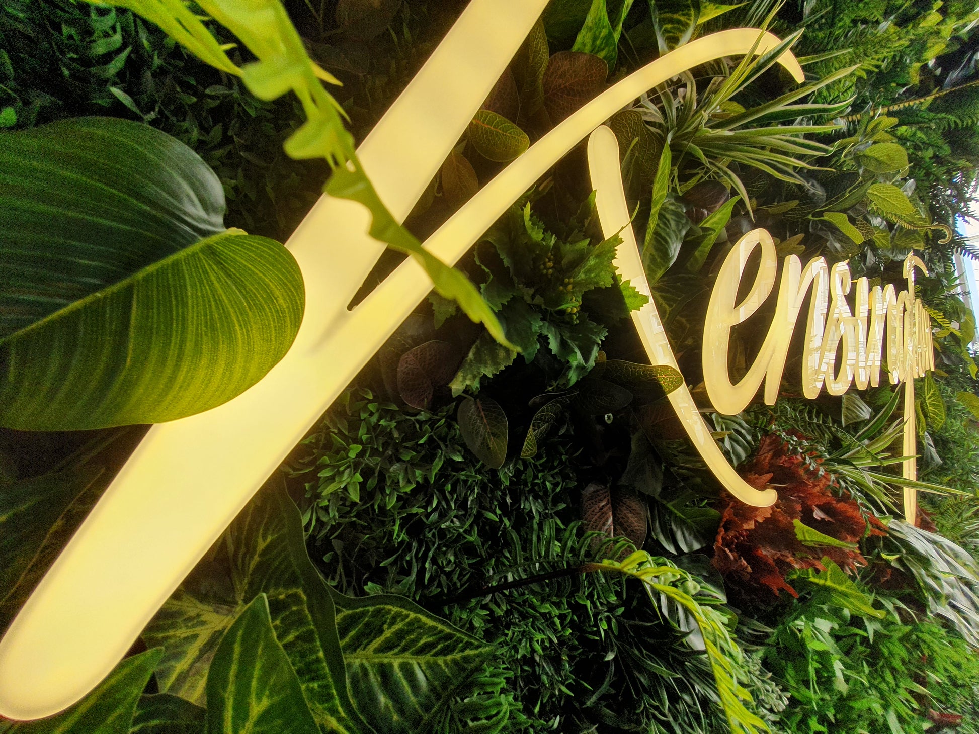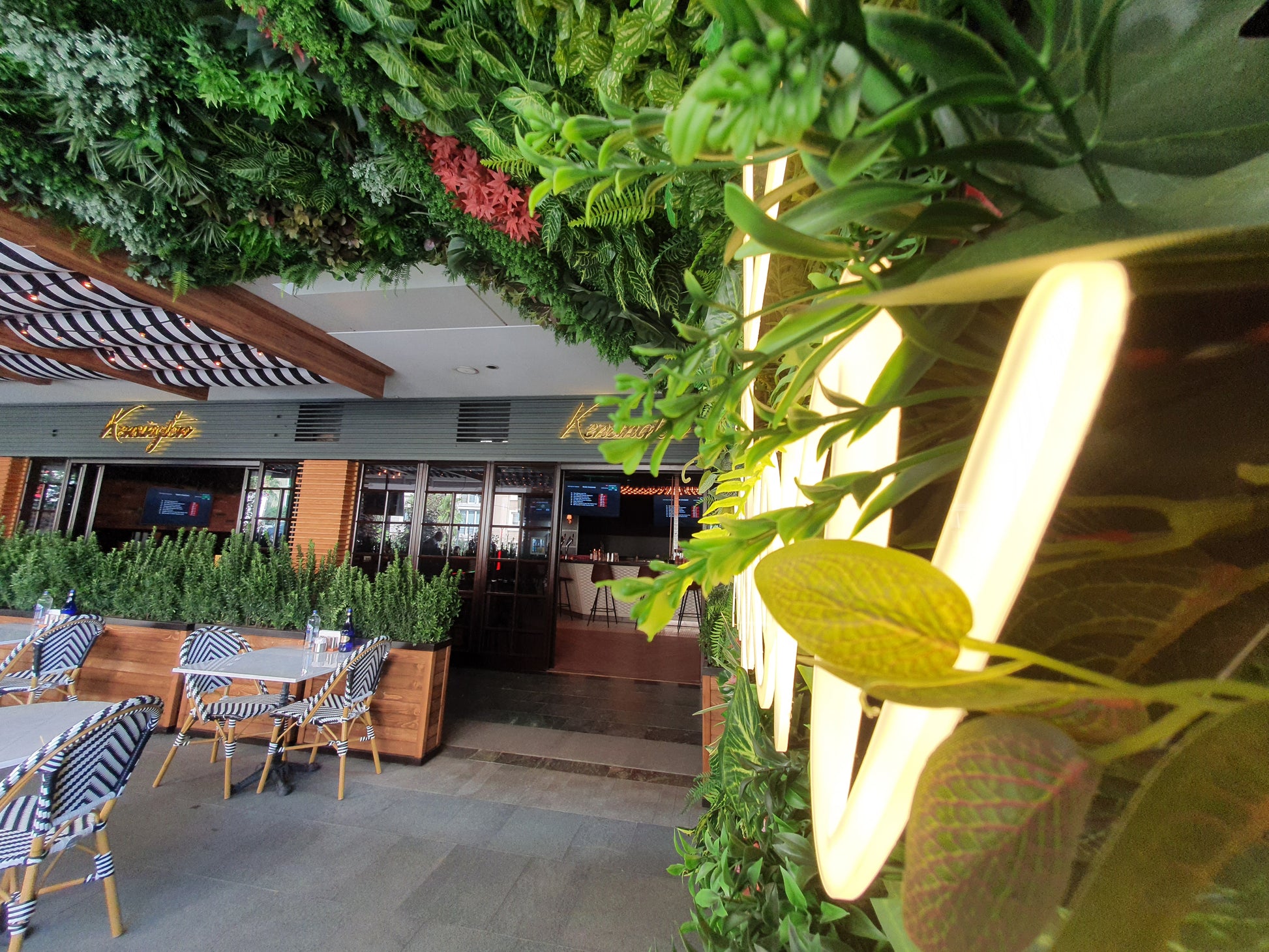 Kensington markası için uyguladığımız ışıklı logo ve doğal bitki duvarı tasarımı, kurumsal kimliği güçlendiren prestijli bir dış/iç cephe çözümüdür.